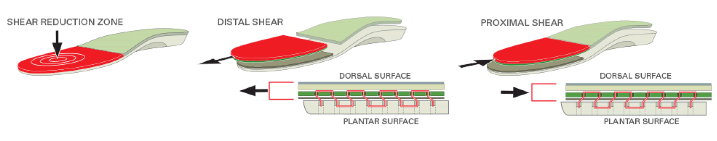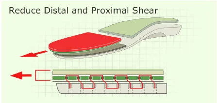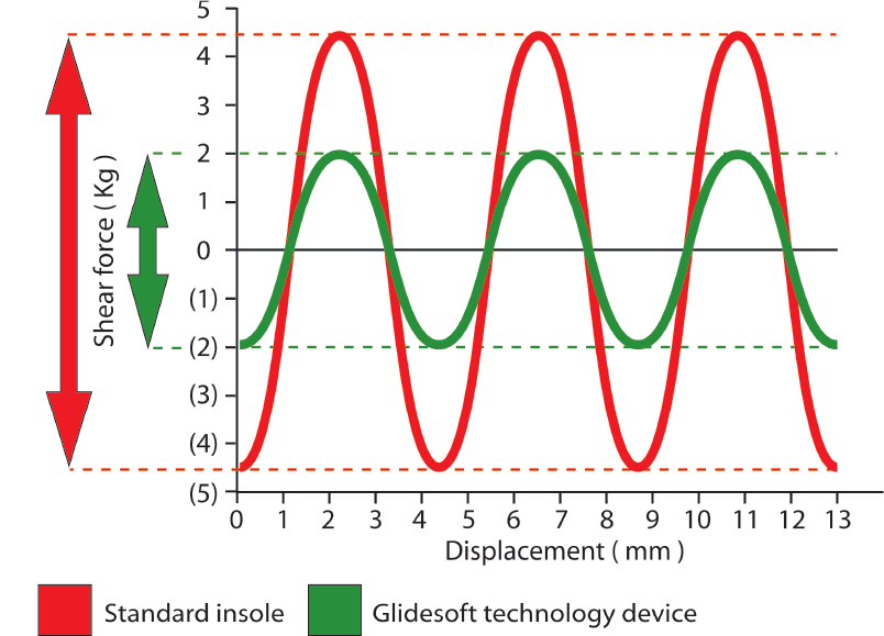 Glidesoft® technology reduces shear force by at least 50% compared to a standard comfort insole.